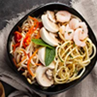 Vegetables, cheeses, ground meats, tomato sauce, seasonings and spices